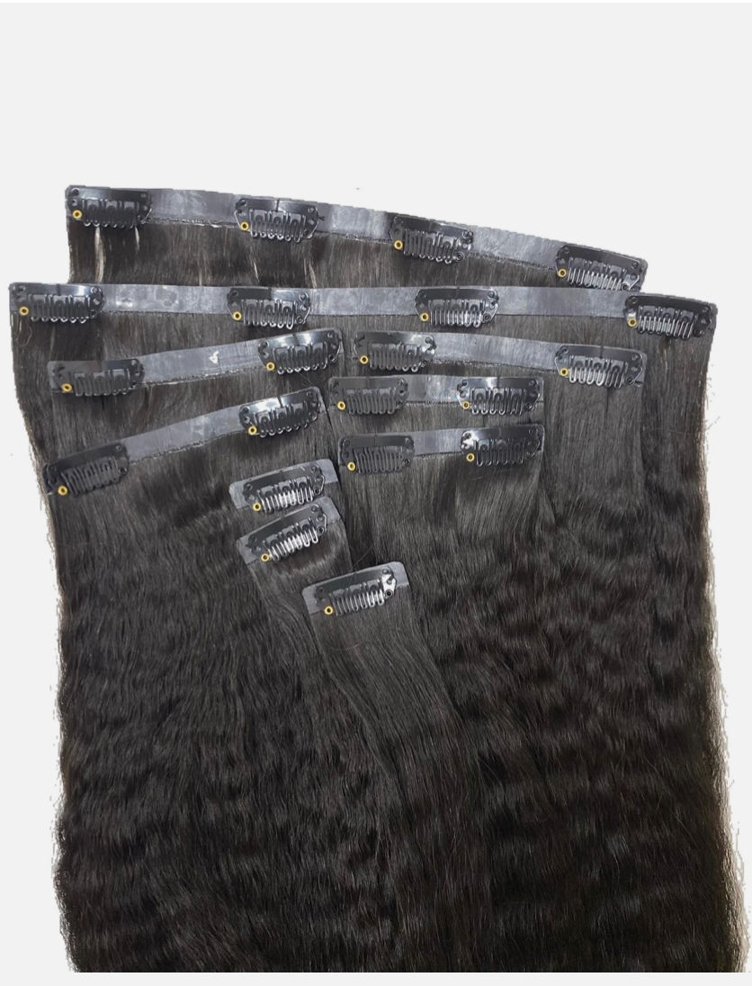 Our seamless clip-ins come in 7 pieces. Perfect for that special occasion. Minimum shedding lasting up to 6- to 12 months with proper maintenance.
